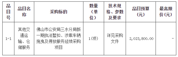 项目名称:佛山市公安局三水分局新一期执法暂扣、涉案车辆拖曳及停放服务延续采购项目