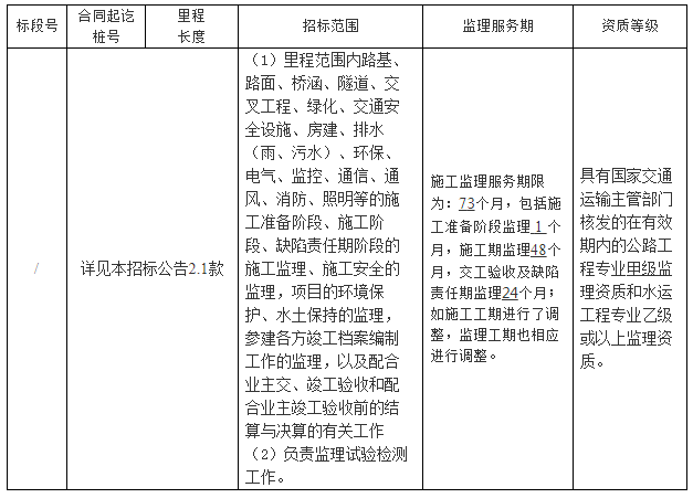 本项目施工监理共划分为 1 个监理标段,具体划分如下: