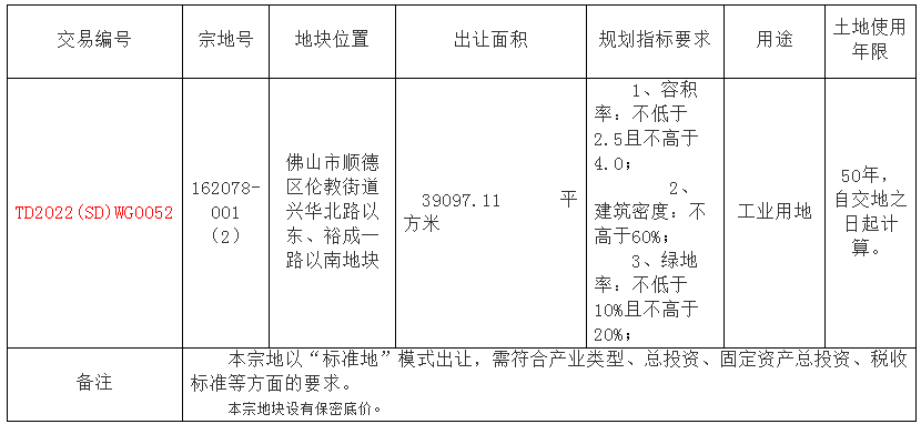 五、有意参与竞买者可于2022年12月 11 日后登录网上交易系统下载TD2022(SD)WG0052 地块的《佛山市顺德区国有建设用地使用权网上挂牌出让文件》。