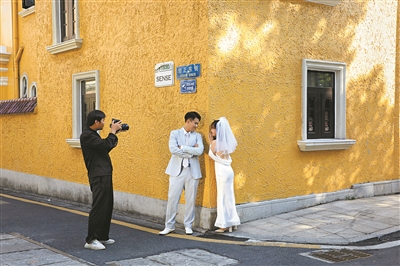 东山口培正路,情侣在阳光下拍摄婚纱照,定格幸福的光影