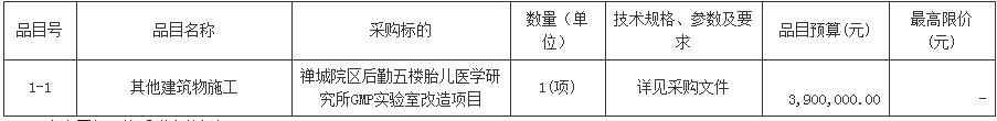 合同包1(禅城院区后勤五楼胎儿医学研究所GMP实验室改造项目):