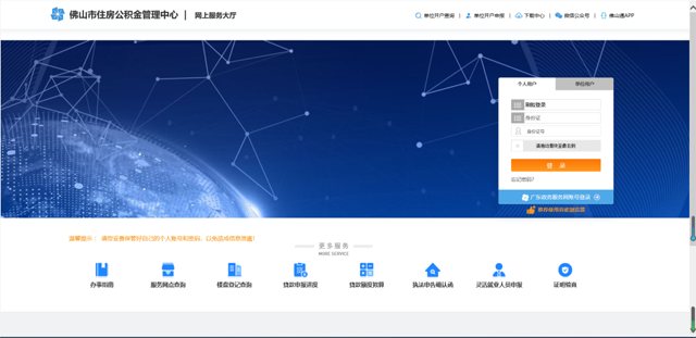 1、登陆佛山市住房公积金管理中心网站http://fsgjj.foshan.gov.cn,点击个人网办事大厅入口;