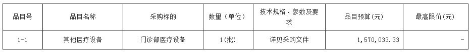 项目名称:门诊部医疗设备一批