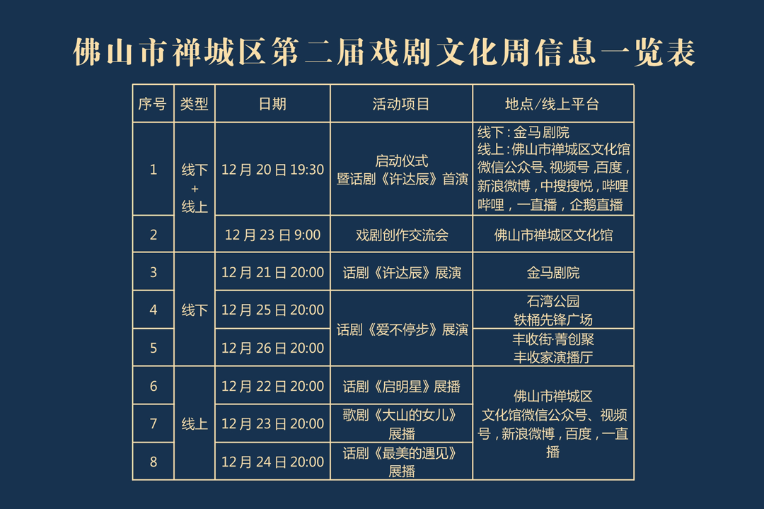 佛山市禅城区第二届戏剧文化周将于12月20日正式拉开帷幕,一连7天,请市民群众看好戏,延续2022年“世界杯”的激情与精彩。