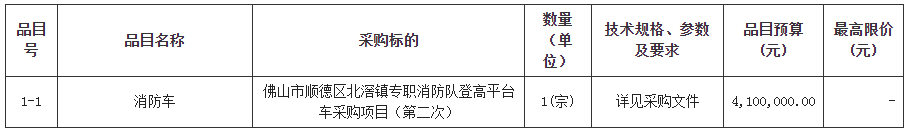 项目名称:佛山市顺德区北滘镇专职消防队登高平台车采购项目(第二次)