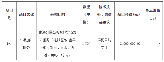 项目名称:南海分局公务车辆定点加油服务(二次)