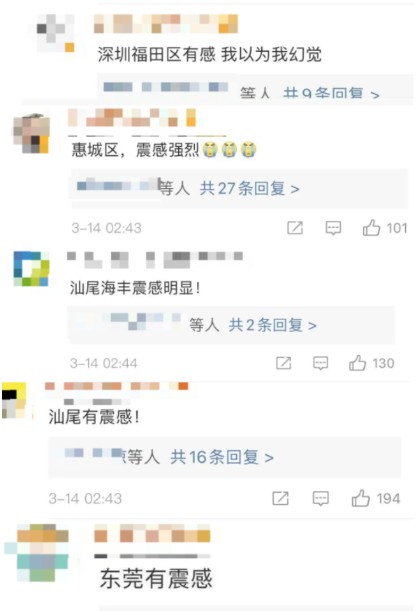 也纷纷表示有不同程度的震感