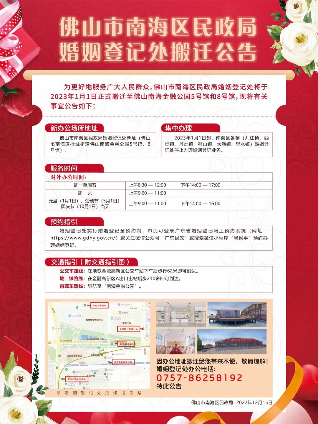 佛山市南海区民政局婚姻登记处新址将启用
