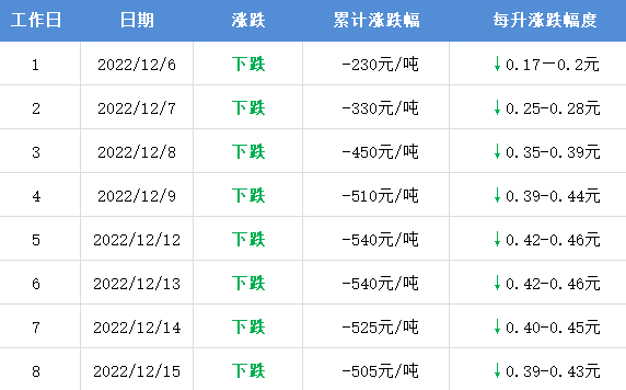 12月18日,第9个工作日,预测汽柴油下调幅度为475元/吨,折算为下调0.37-0.41元/升,加满50升将节省18-20元。