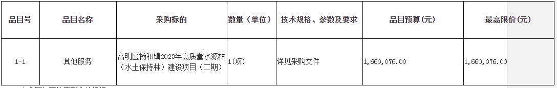 采购包1(高明区杨和镇2023年高质量水源林(水土保持林)建设项目(二期)):