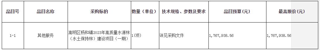 采购包1(高明区杨和镇2023年高质量水源林(水土保持林)建设项目(一期)):