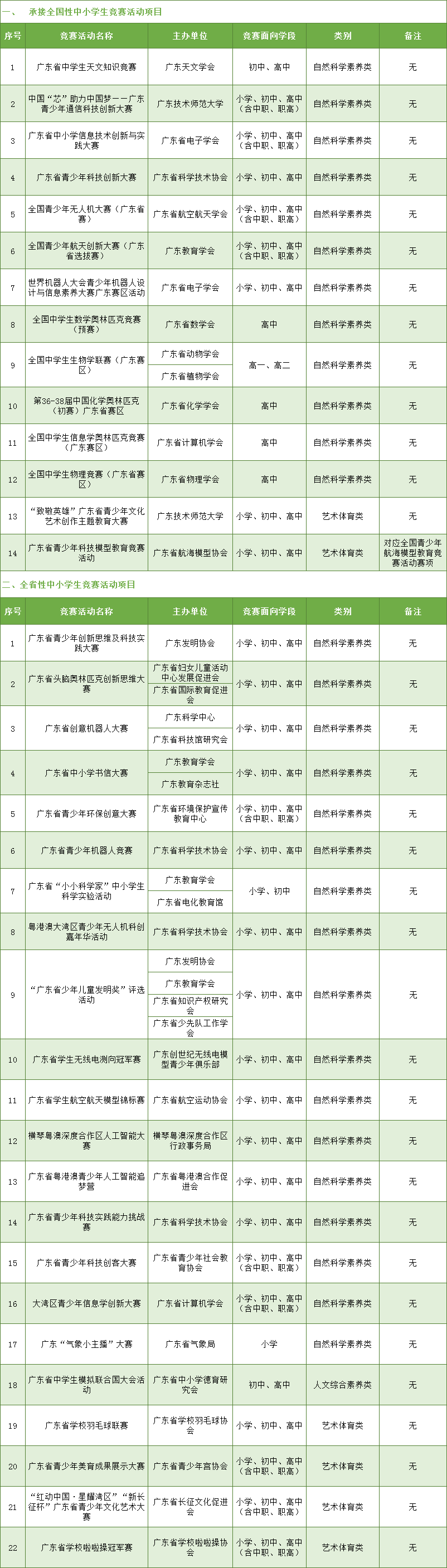 概述:确定广东省中学生天文知识竞赛等36项竞赛活动为2022-2025学年面向中小学生的全省性竞赛活动......