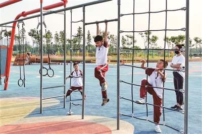 街心公园毗邻多个社区,改造前,这里缺乏健身器材。为满足群众的健身需求,今年高明新建或改建25个社区体育公园,打造居民10分钟健身圈。