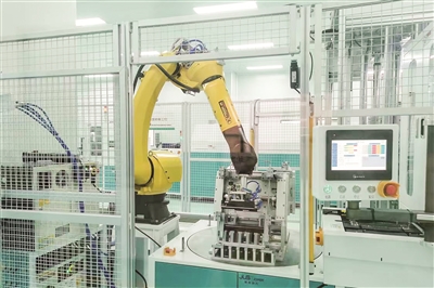 佛山南庄高端精密智造产业园内,某企业正在利用机器人进行生产。