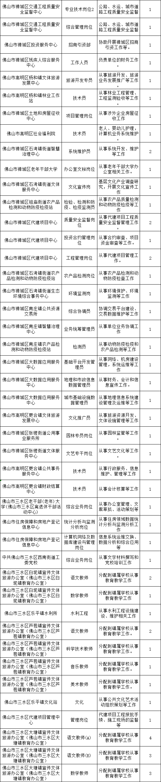【佛山考区招聘岗位】
