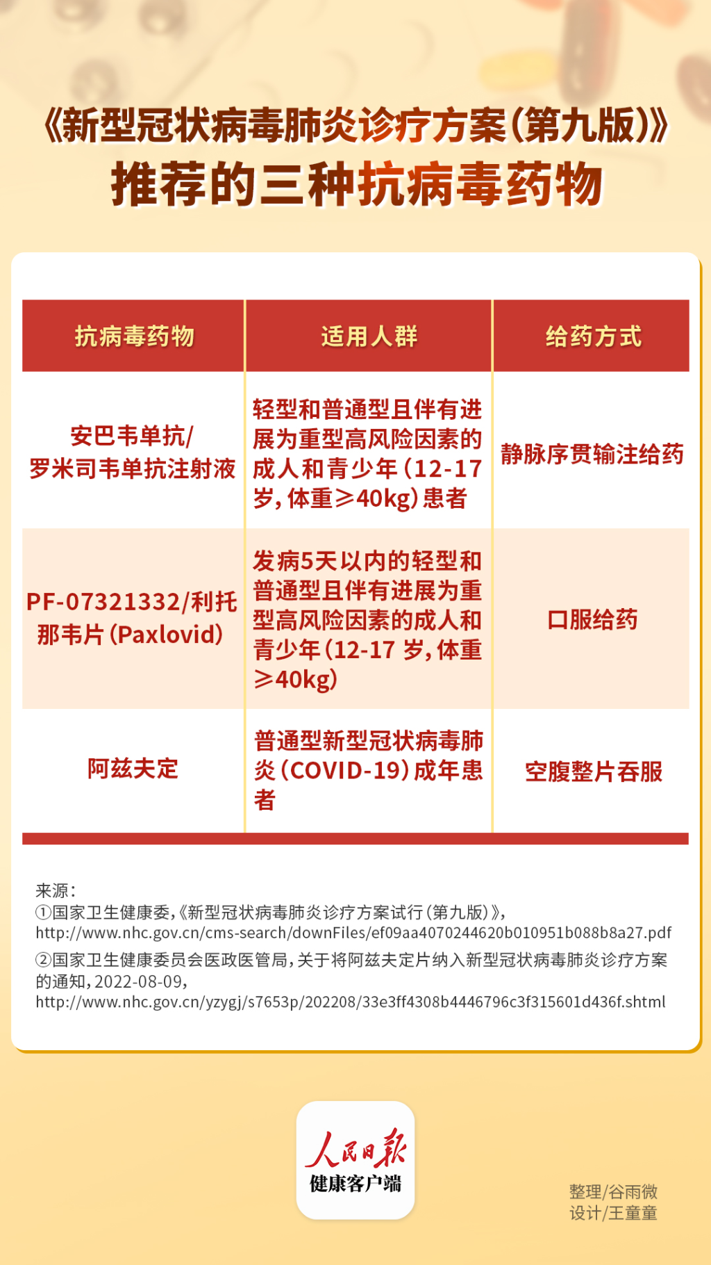 重症如何用药?“目前,大部分人感染后表现为轻型或无症状,但对重症高风险人群,还是要进行早期干预。”北京大学第一医院感染疾病科主任王贵强在国务院联防联控机制新闻发布会表示,“《新型冠状病毒肺炎诊疗方案(第九版)》推荐了三种抗病毒药物,包括单克隆抗体、奈玛特韦片/利托那韦片组合包装和阿兹夫定。这些抗病毒药物早期使用都可能减少重症发生,缩短病程,缩短病毒的排毒时间。”