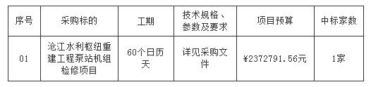 二、项目名称:沧江水利枢纽重建工程泵站机组检修项目