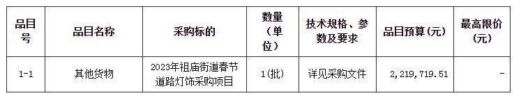 项目名称:2023年祖庙街道春节道路灯饰采购项目