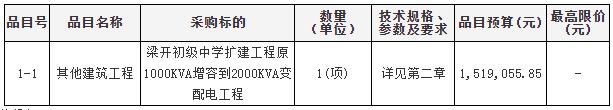 采购包1(梁开初级中学扩建工程原1000KVA增容到2000KVA变配电工程):
