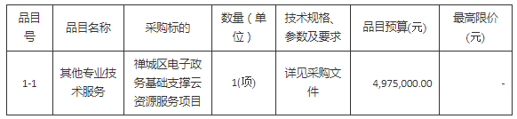 项目名称:禅城区电子政务基础支撑云资源服务项目