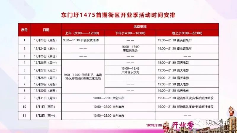 即日起至1月2日,活动连场转不停。除了吃喝玩乐购,每天还有精彩的表演,街头音乐节、露天电影、文创集市、曲艺粤剧表演。