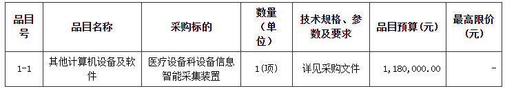 > 佛山市第一人民医院医疗设备科设备信息智能采集装置招标公告