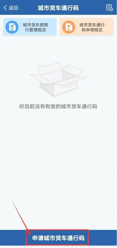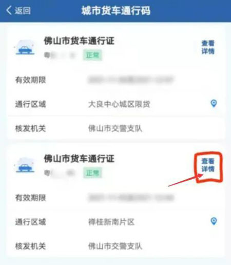 审核通过的用户点击“交管12123”APP【城市货车通行码申领】进入城市货车通行码首页,点击“查看详情”,可以查看已核发的货车电子通行码允许车辆通行的时段、路段或区域等具体信息,请驾驶人根据要求驾车通行。