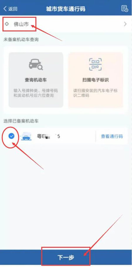 选择通行码申领城市(默认用户注册地)后,在已备案的机动车列表中,选择申领通行码的机动车。