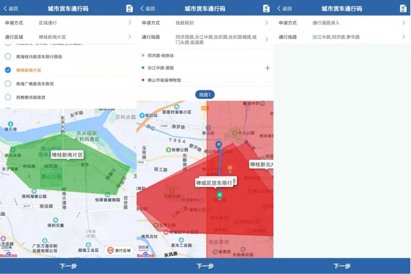 3️⃣录入通行道路。申请方式选择“通行道路录入”,用户通过手工录入需要通行的每条道路名称。