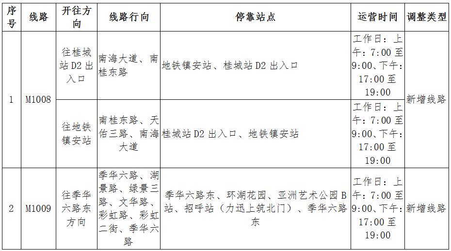 为配合佛山地铁3号线首通段于2022年12月28日中午的开通,M1008、M1009在12月28日的运营时间为:“12:00至19:00”;从12月29日起,按原运行时间营运,敬请市民留意。