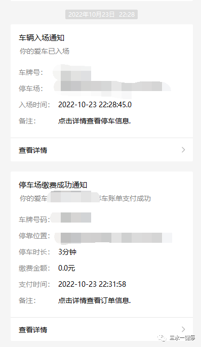 在“三水一键停”公众号以微信服务通知的形式进行推送
