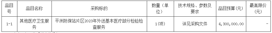 合同包1(平洲防保站片区2023年外送基本医疗部分检验检查服务):