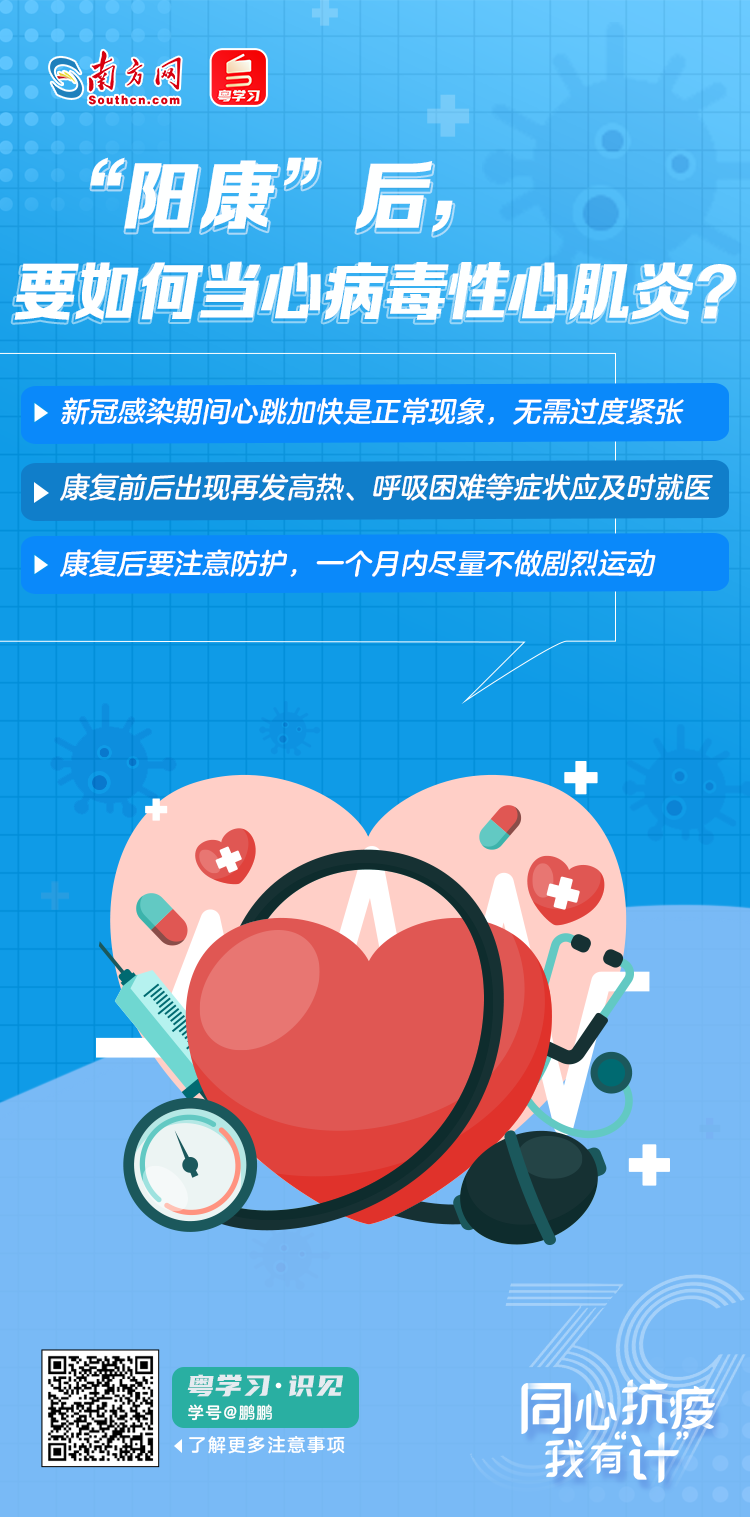 网上流传的各种说法引起“阳康们”的新一轮忧虑:“我的心跳有点快,要不要去医院?”“我的心跳每分钟120多下,是不是得了心肌炎?”“阳了第四天,今天突然心跳加快,动一下容易心慌,需要就医吗?”……在新冠并发症中,病毒性心肌炎确实需要引起关注,但目前流行的奥密克戎变种导致病毒性心肌炎的风险已经大大降低,“阳康”们不需要太过焦虑。