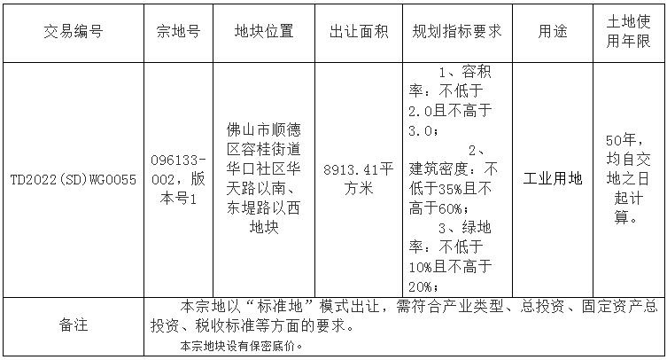 五、有意参与竞买者可于2022年12月28日后登录网上交易系统下载TD2022(SD)WG0055 地块的《佛山市顺德区国有建设用地使用权网上挂牌出让文件》。