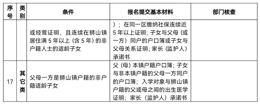 ③在狮山镇连续居住并依法缴纳社会保险费满5年以上(含5年),有固定住址、有合法就业或经营证明的非户籍人士适龄子女(简称“双五类”)。不符合以上条件的可根据自身条件先选报“其他”类型,具体能否录取以3、4月份正式报名后的审核结果为准。