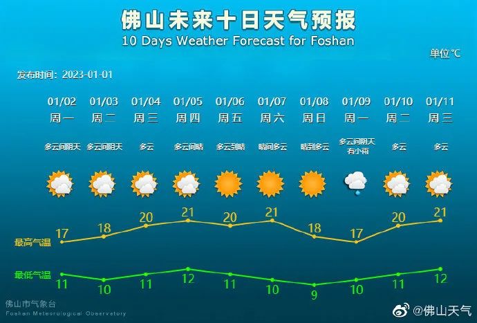 据佛山市气象台1月1日15时45分发布,预计2023年1月份佛山主要有5次冷空气过程,大致出现在: