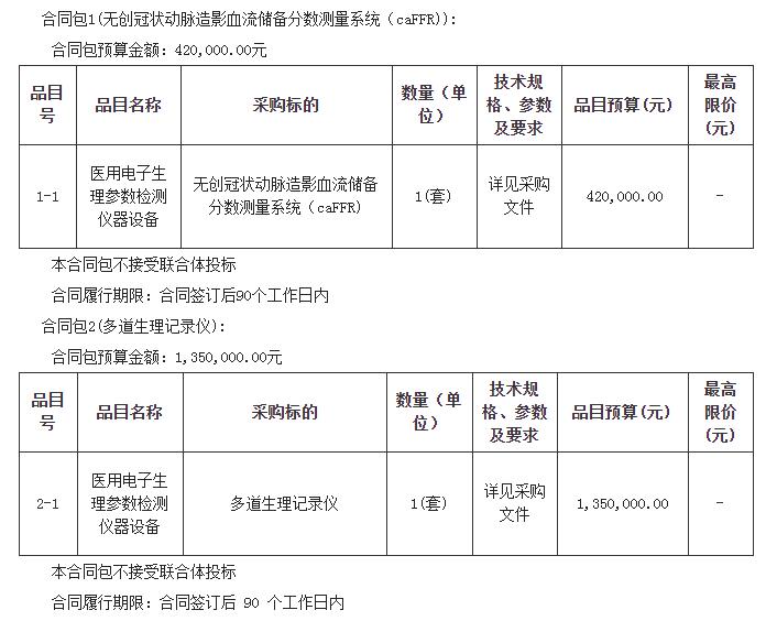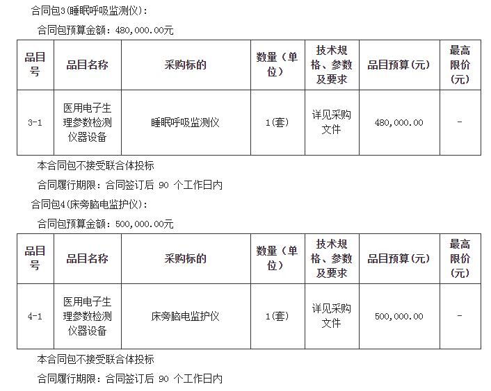 5.各采购包组投标报价不得高于下列金额,否则其投标报价将视为无效,采购包1(无创冠状动脉造影血流储备分数测量系统(caFFR))的最高投标限价为:420,000.00元;采购包2(多道生理记录仪)的最高投标限价为:1,200,000.00元;采购包3(睡眠呼吸监测仪)的最高投标限价为:480,000.00元;采购包4(床旁脑电监护仪)的最高投标限价为:500,000.00元;