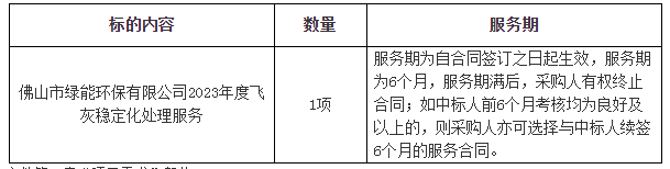 广东德正工程管理有限公司受佛山市绿能环保有限公司委托,就佛山市绿能环保有限公司2023年度飞灰稳定化处理服务进行公开招标采购,欢迎符合资格条件的投标供应商参加。