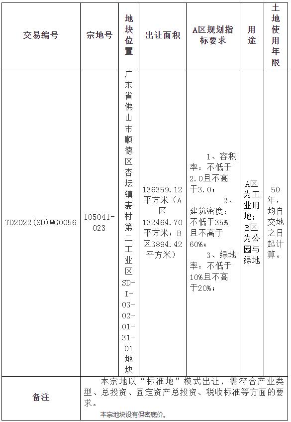 五、有意参与竞买者可于2023年1月4日后登录网上交易系统下载TD2022(SD)WG0056 地块的《佛山市顺德区国有建设用地使用权网上挂牌出让文件》。