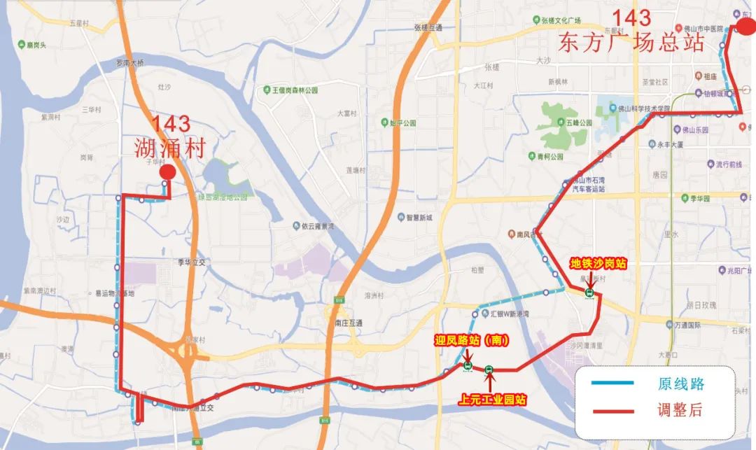 取消行驶南庄大道(迎凤路以东段)、石南大桥、东风路,改行迎凤路、凤翔大桥、博远路、新岗路、魁奇西路。