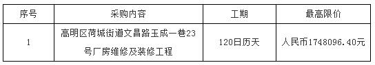 二、 采购项目名称:高明区荷城街道文昌路玉成一巷23号厂房维修及装修工程