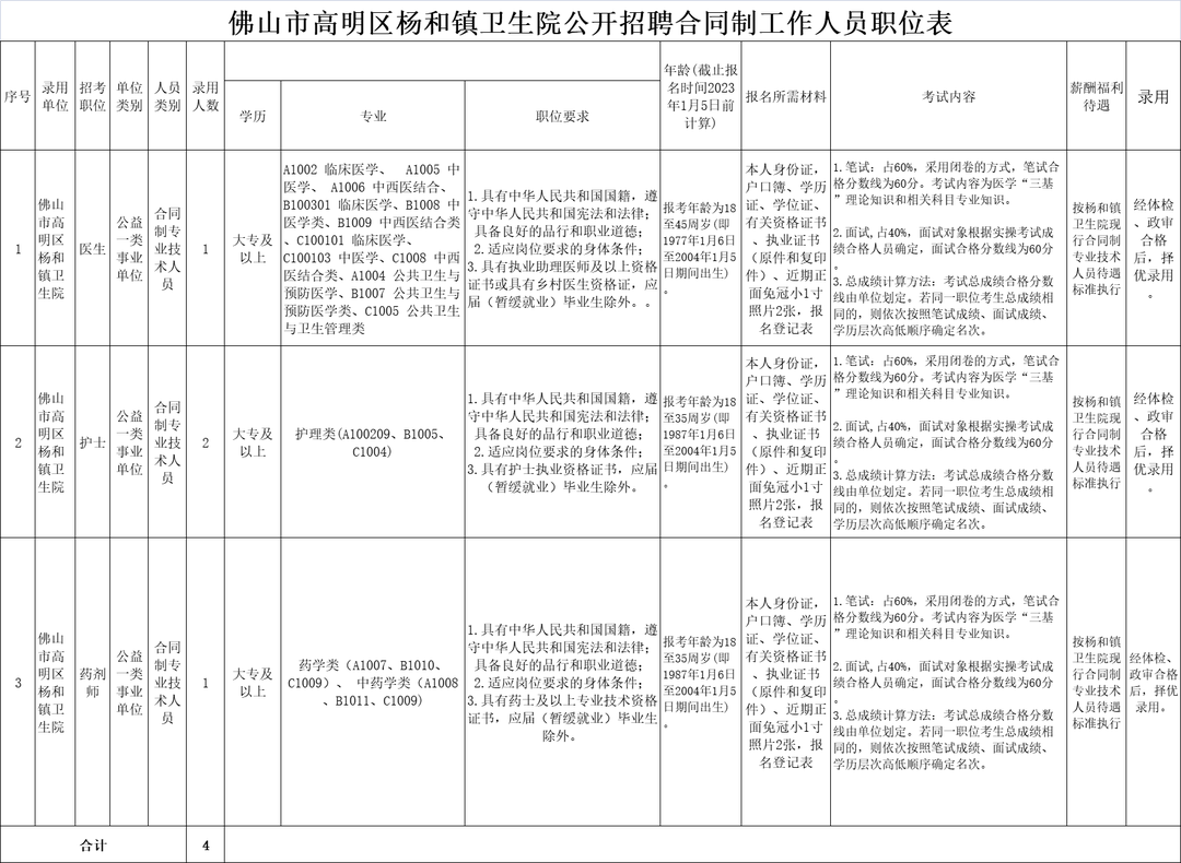 1.现场报名:填写报名表,持相关证件原件及复印件到佛山市高明区杨和镇卫生院三楼办公室