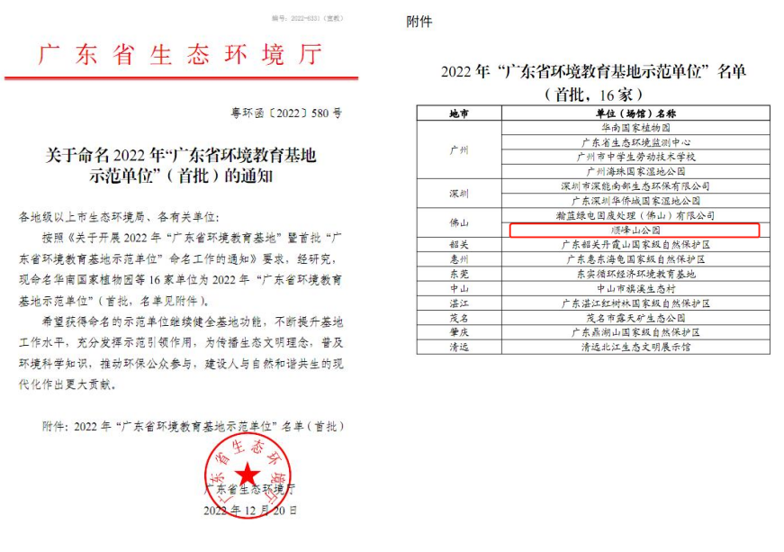 近日,省生态环境厅发布《关于命名2022年“广东省环境教育基地示范单位”(首批)的通知》,首批16家“广东省环境教育基地示范单位”新鲜出炉!其中顺峰山公园榜上有名,成为顺德区唯一入选的环境教育基地示范单位。这也是2022年顺峰山公园继喜获“最受市民喜爱的十大社区体育公园”称号后又一喜讯。