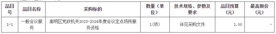 项目名称:高明区党政机关2023-2024年度会议定点场所服务资格