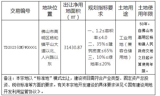 五、有意参与竞买者可于2023年1月6日后登录网上交易系统下载该地块的《佛山市高明区国有建设用地使用权网上挂牌出让文件》。
