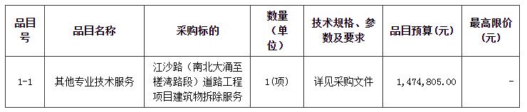 项目名称:江沙路(南北大涌至槎湾路段)道路工程项目建筑物拆除服务