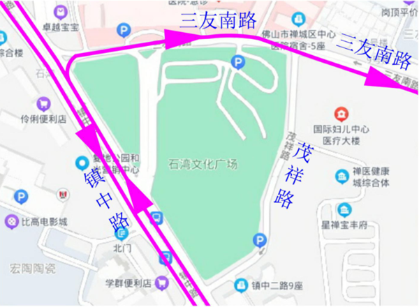 由于佛山市禅城区三友南路(镇中路至茂祥路)沿线多为居民区、学校、医院及其他公共用地,现状路为双向两车道,需对该道路改造提升为双向4车道,道路宽度为20m,并同时实施建设石湾广场石湾地铁站交通枢纽一体化项目地下通道工程。计划于2022年3月24日至2022年8月30日进行对茂祥路段围蔽施工。