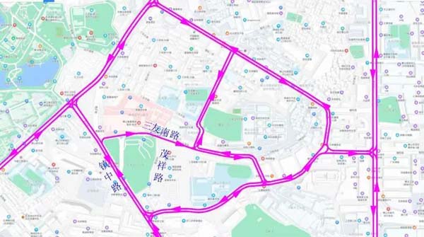 往奇槎公交枢纽站方向,取消行驶金澜南路、星寓路、宝源路、东平路部分路段,绕行澜石二路、岭南大道后接回原线行驶。