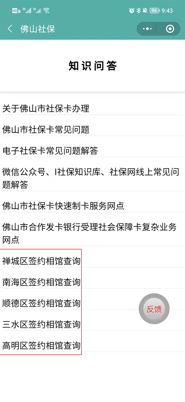 定点照相馆地址查询方式:通过“佛山社保”微信公众号,点击“社保卡服务”—“社保卡业务办理”—“知识问答”。