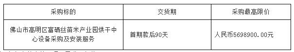 高明区富硒丝苗米产业园烘干中心设备采购及安装服务招标公告